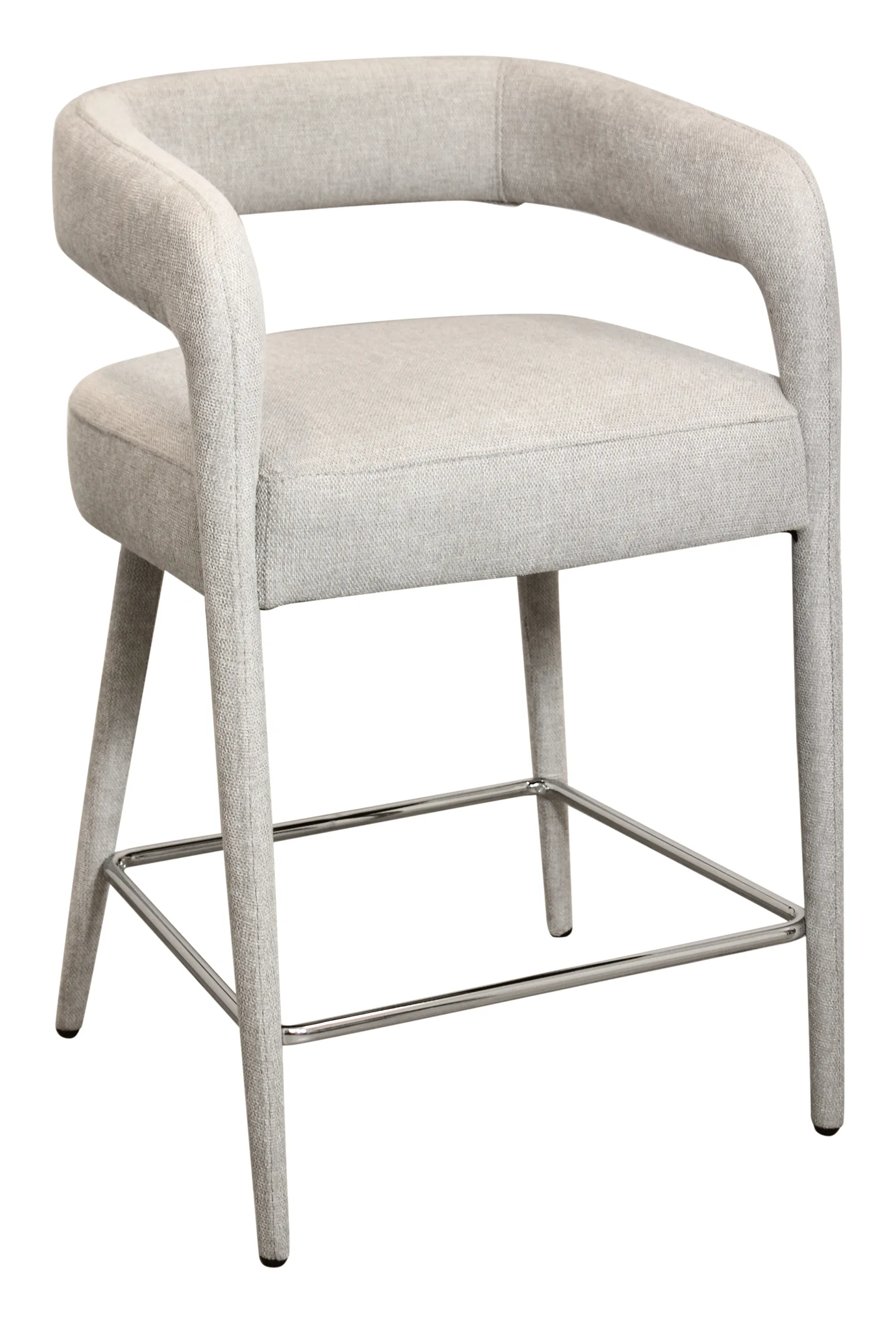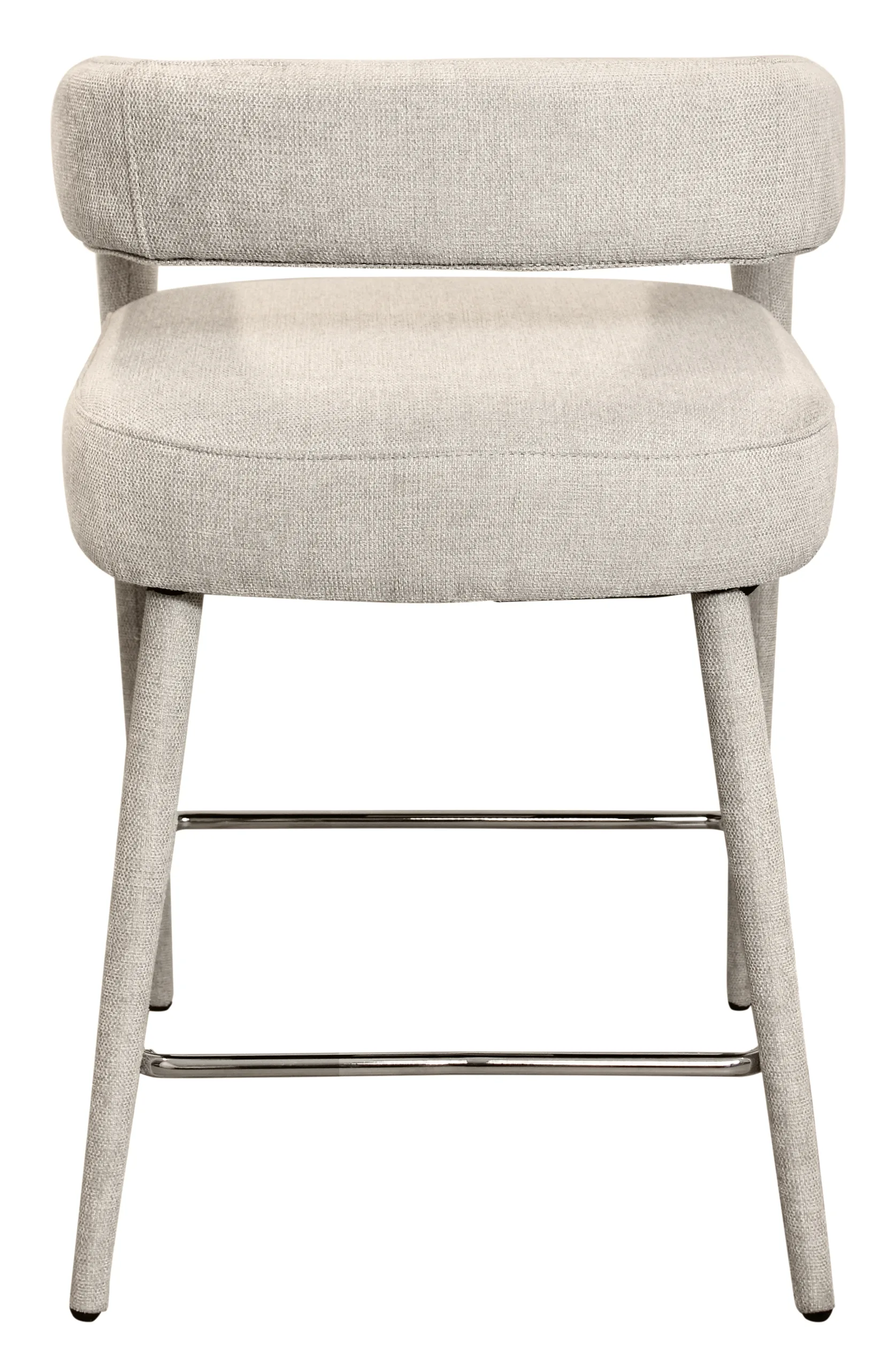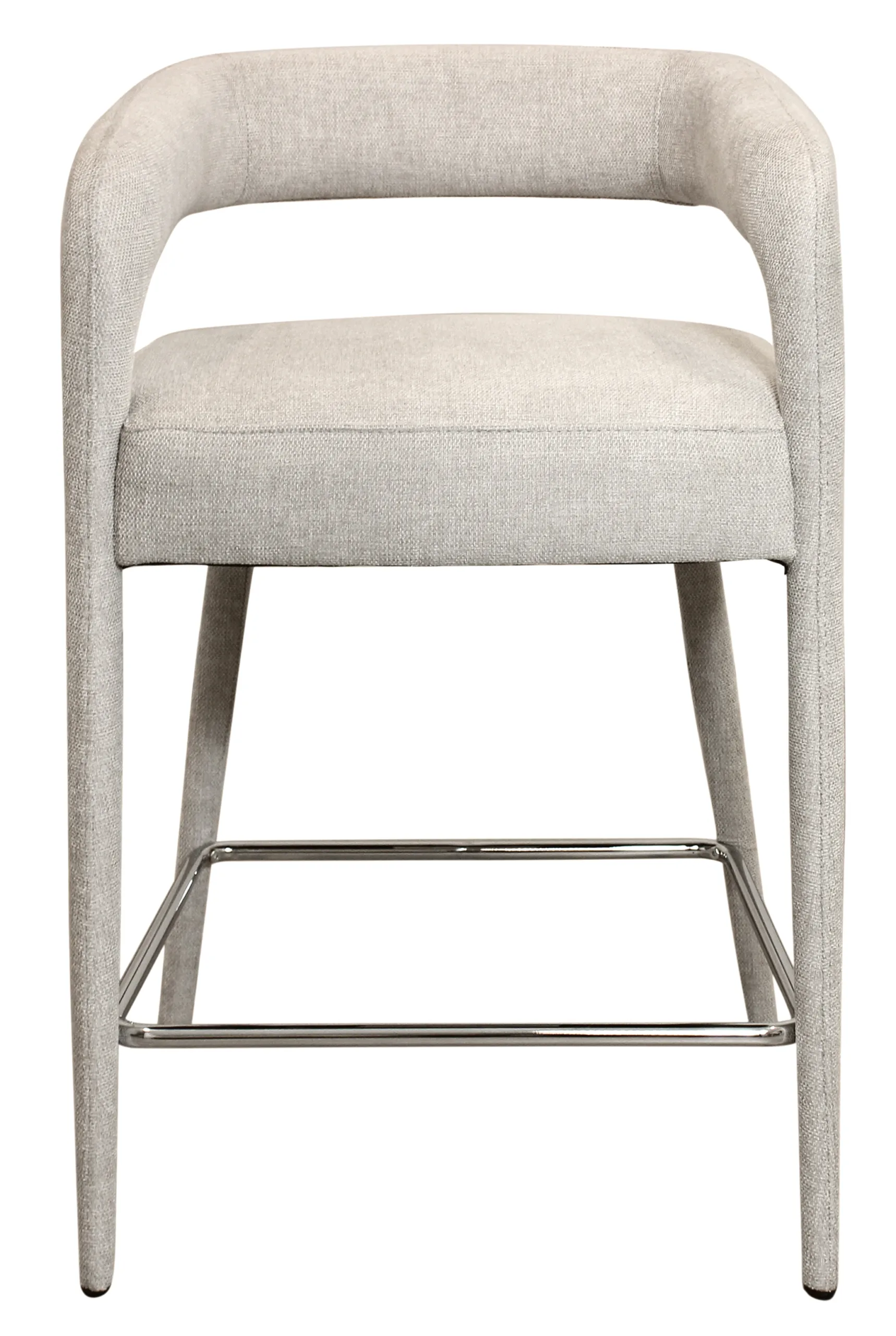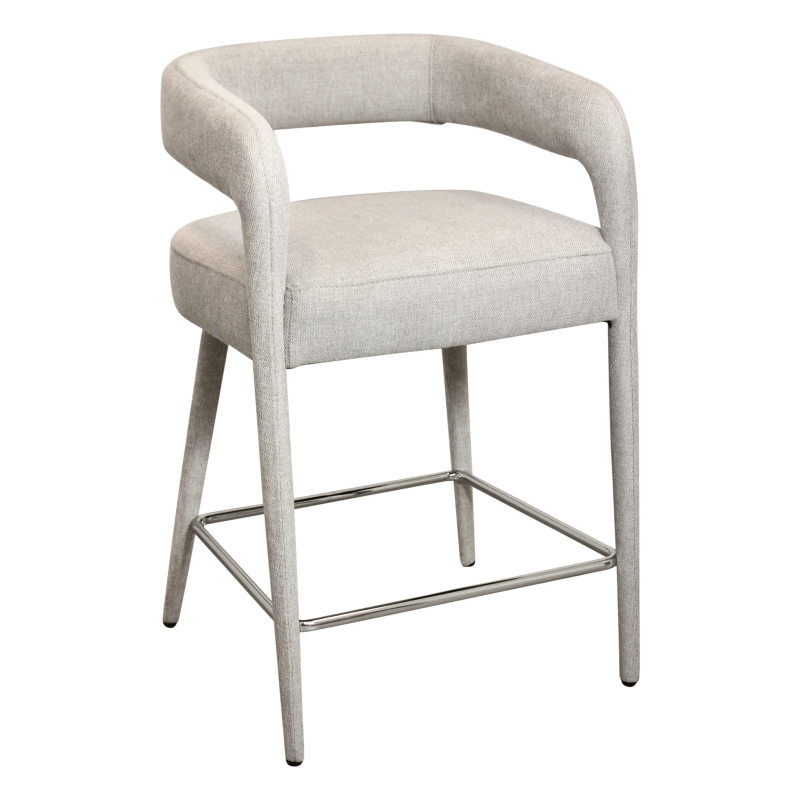 Chic and sophisticated, this Belfast Comfy Counter Chair works beautifully at a counter or bar top. The chair features a sturdy metal frame topped with cushioning that is filled with a combination of foam and down and finished with an ivory fabric made from linen and polyester. Clean lines and a sculptural silhouette make this counter chair a true statement piece that is both eye-catching and exceedingly comfortable to sit in.