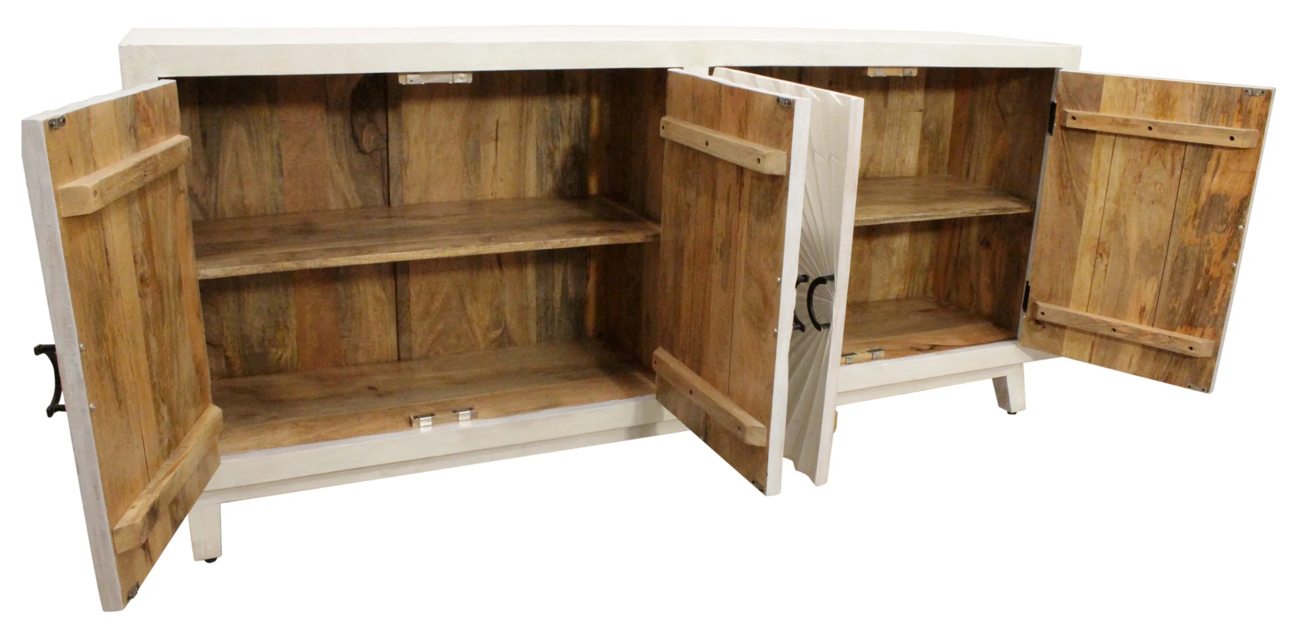 - Features 4 solid wood doors with magnetic closures for ease of use