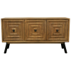 With a commanding and handsome presence, the Imperium sideboard is a piece to live for. Each sideboard features two cabinets with a shelf in each and three spacious drawers. This sideboard has satin black metal pulls and is crafted from solid kiln-dried mango wood. The natural wood tones throughout the piece create an industrial look and it rests beautifully in any room it is placed in.