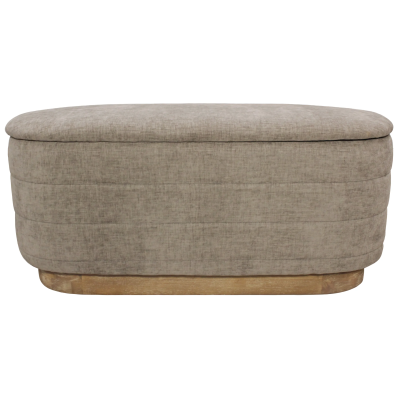 Eye-catching with its simple allure, the Jacquelyn storage bench is a conversation starter in any room. Made on a solid wood base and upholstered in premium multi-weaved fabric, these pieces are made to withstand the test of everyday life. This bench features a lift top combining style and utility. Horizontal tufting adds dimension lending to its distinctive contemporary design.