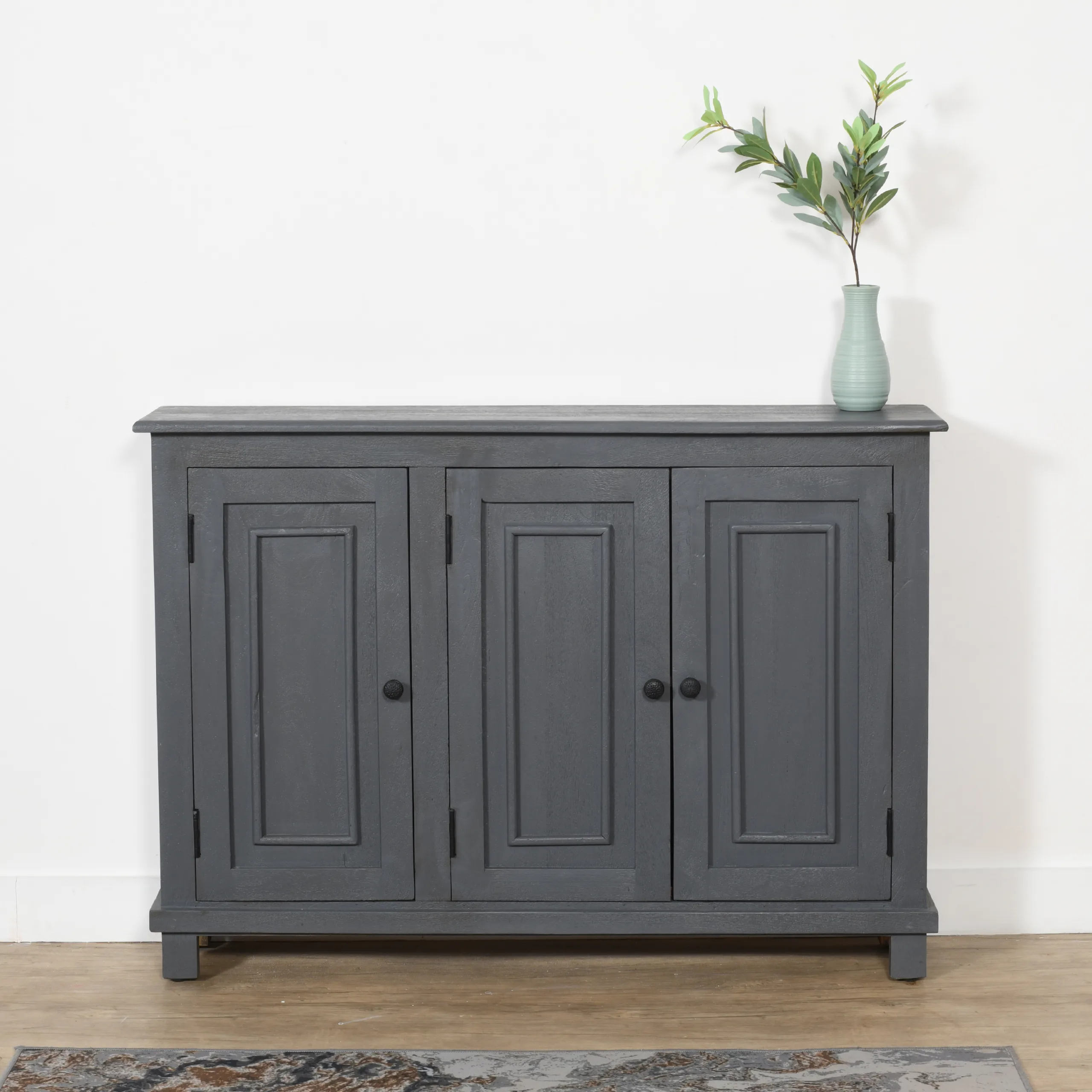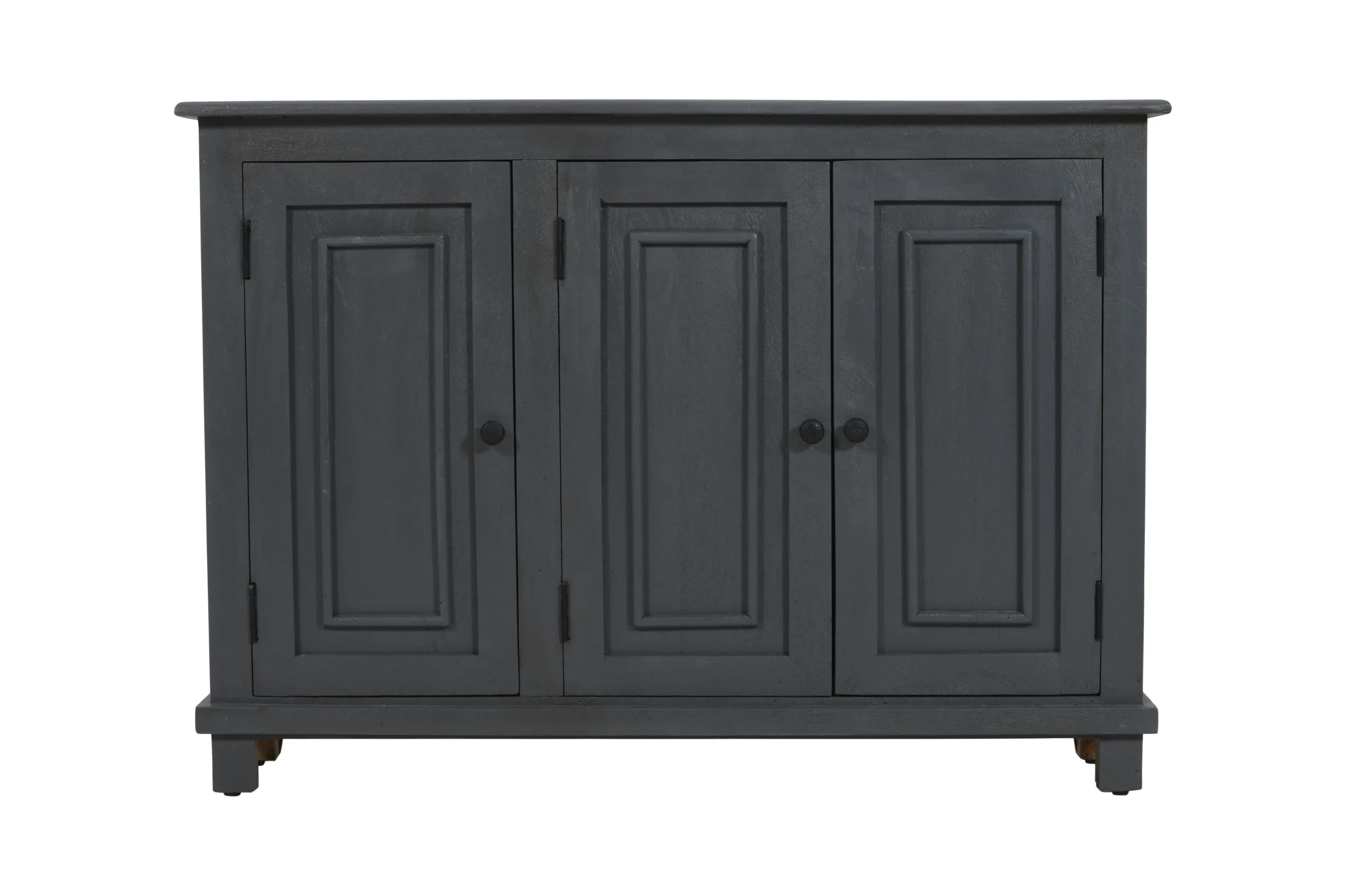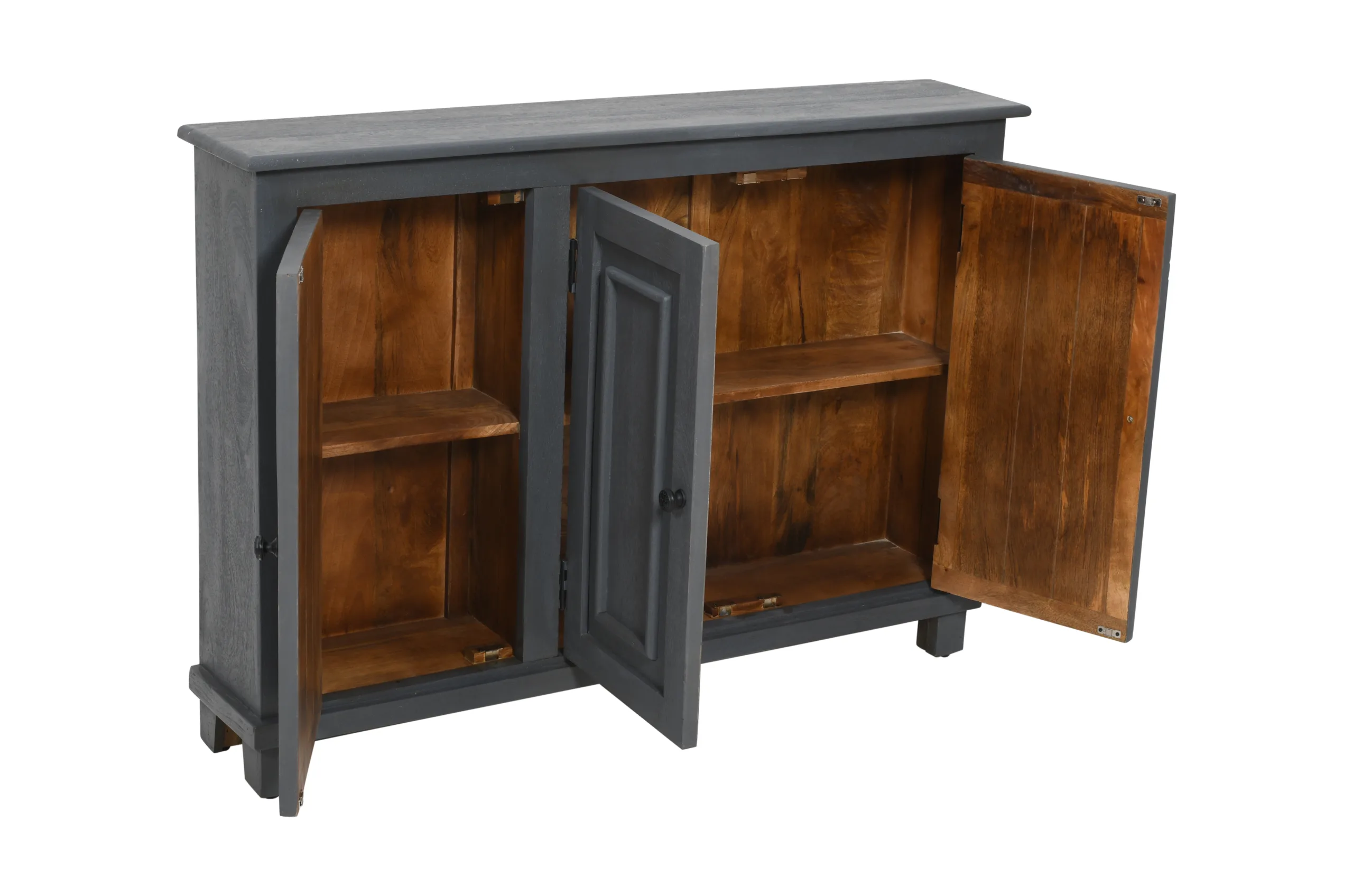 This Jenson 3-Door Sideboard is masterfully crafted in India from solid mango wood. Its solid wood frame provides confidence-inspiring strength and stability. The cabinet doors open to interior storage shelves, making this sideboard a great addition for anyone aiming to keep their living spaces both organized and stylish. With a classic rectangular shape and sophisticated gray finish, this piece blends seamlessly with a wide range of existing décor and design aesthetics.