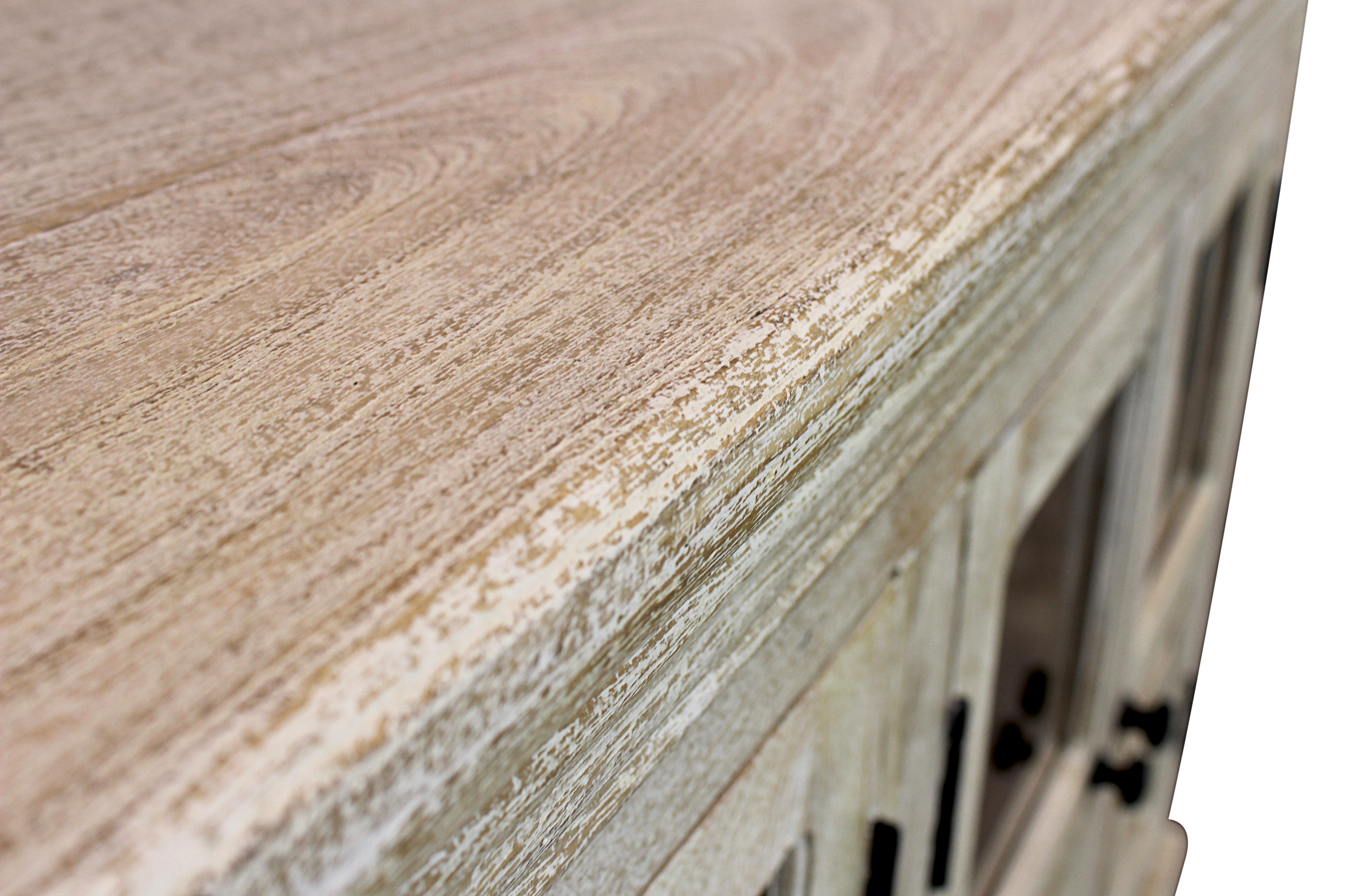 - Meticulously hand-rubbed distressed white finish allows the beauty of the wood’s natural grain to be showcased and appreciated