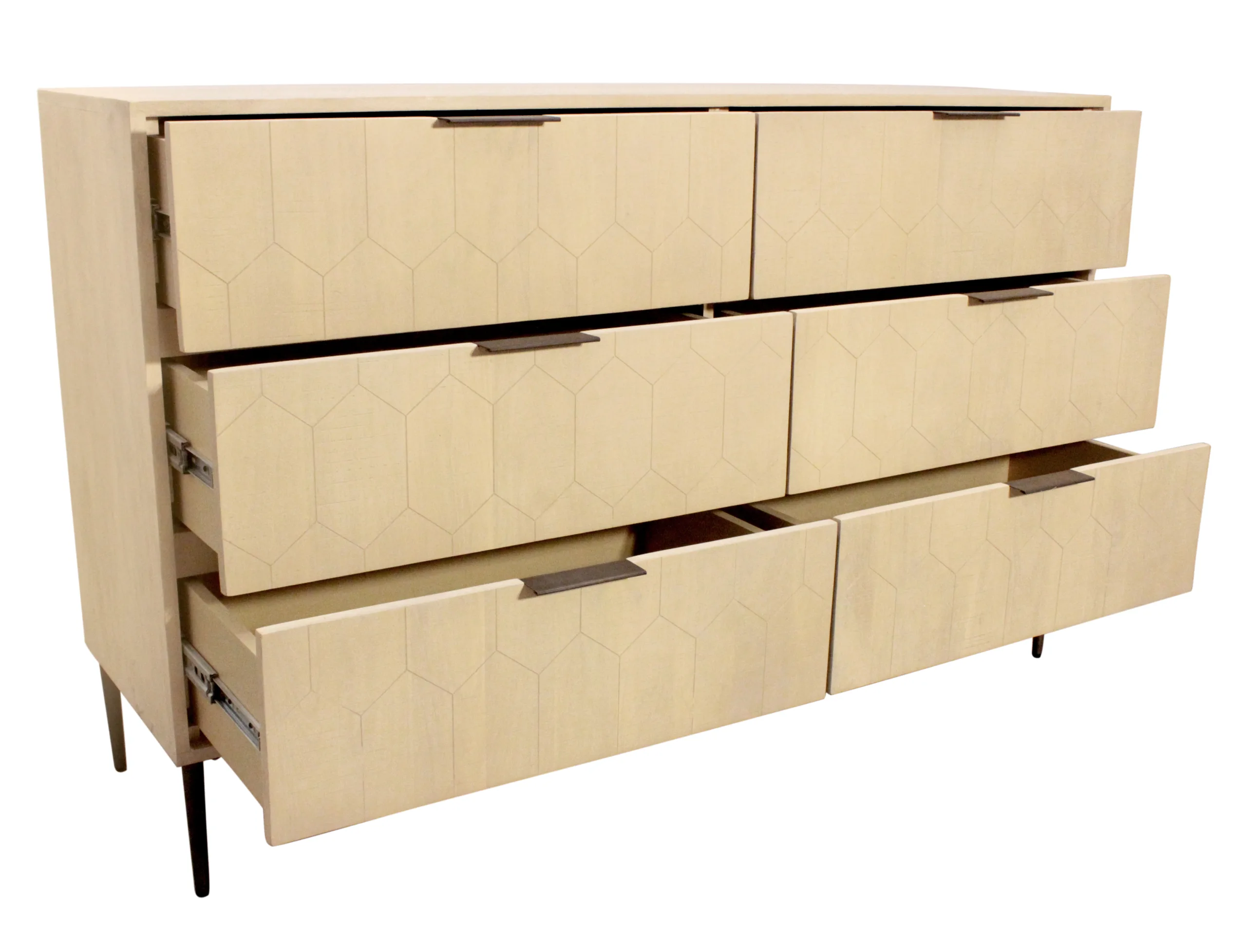 • Features 6 deep set drawers on velvety smooth metal drawer glides