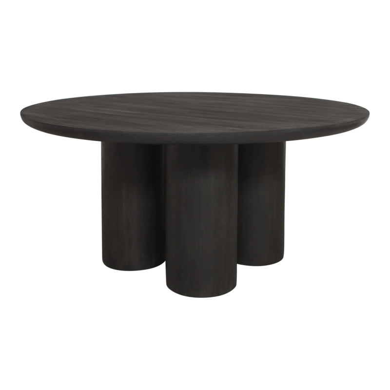Our Syracuse 63” Round Dining Table is the perfect addition to any dining room. Featuring sturdy solid wood construction and a sophisticated dark brown finish, this table is built to withstand the test of time when it comes to both stability and style. The unique leg design features four large cylinder-shaped legs that jointly form the table’s central base, allowing this piece to stand out as a true statement selection. Masterfully crafted from solid mango wood in India, this table requires minimal assembly for additional ease.